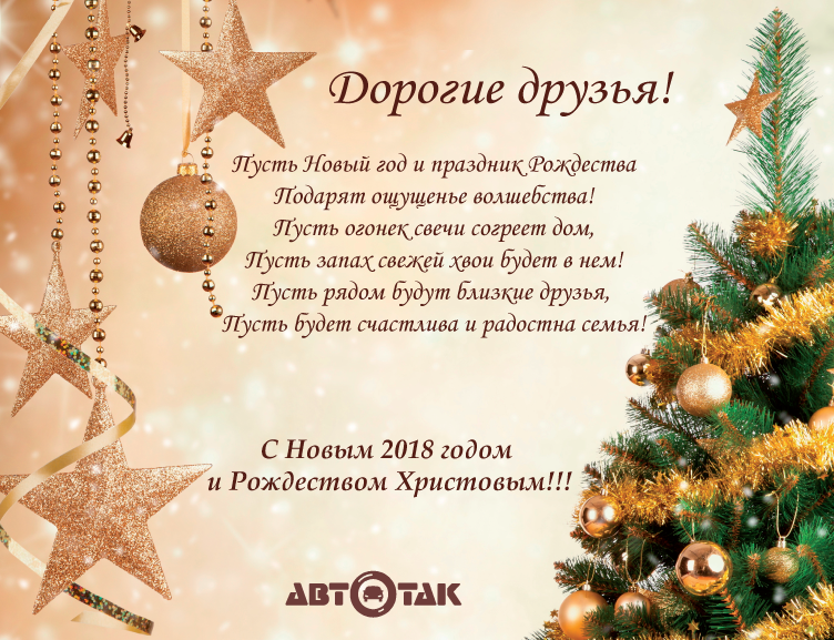 Дорогие друзья! Сердечно поздравляем Вас, Ваших родных и близких с Новым 2018 годом и Рождеством Христовым!